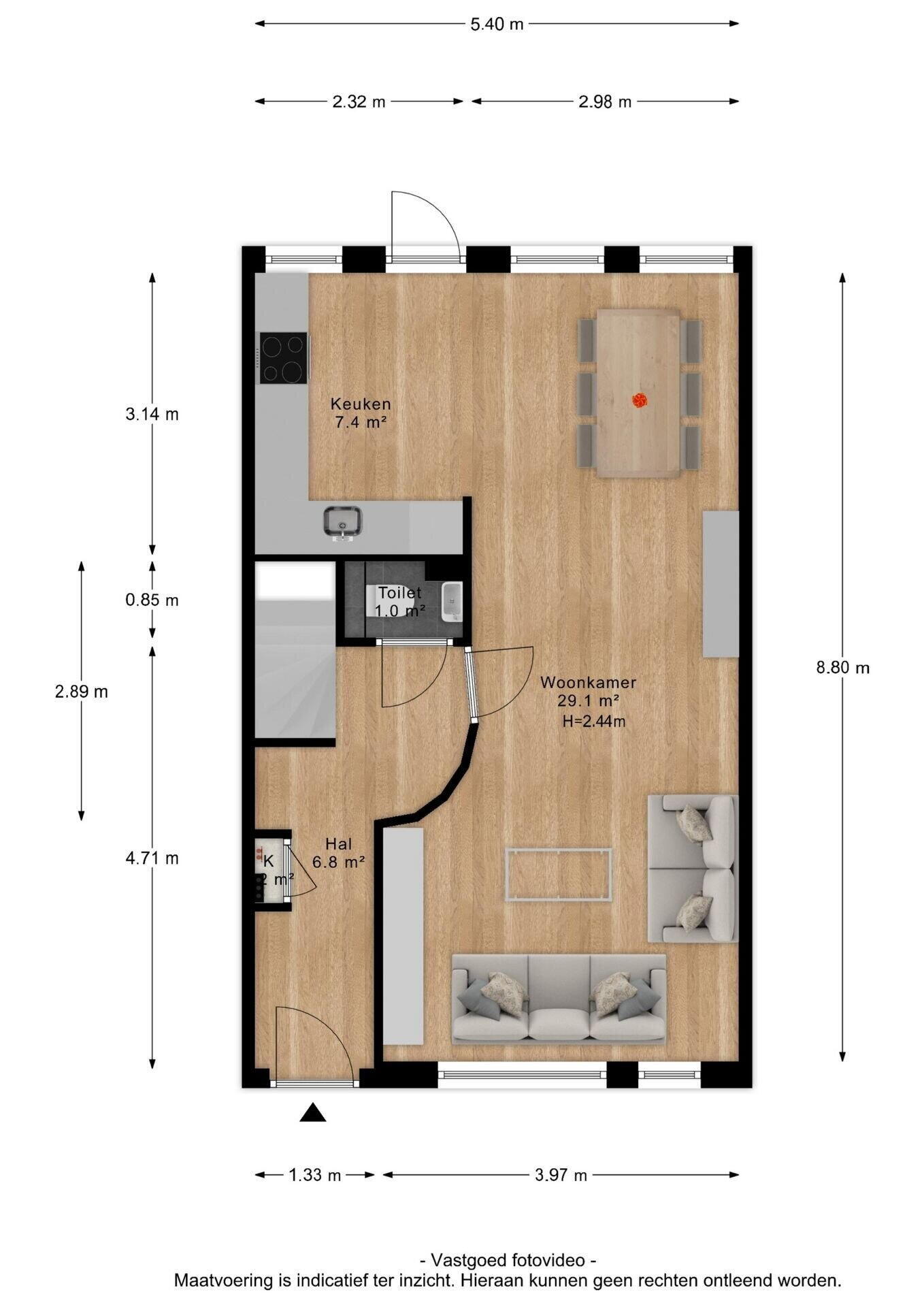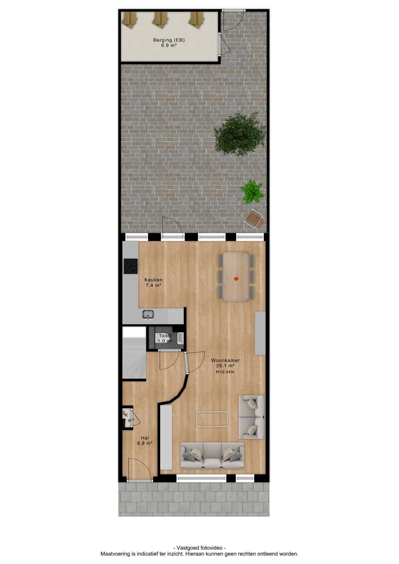 - 44 m² (8,00 meter diep en 5,50 meter breed)