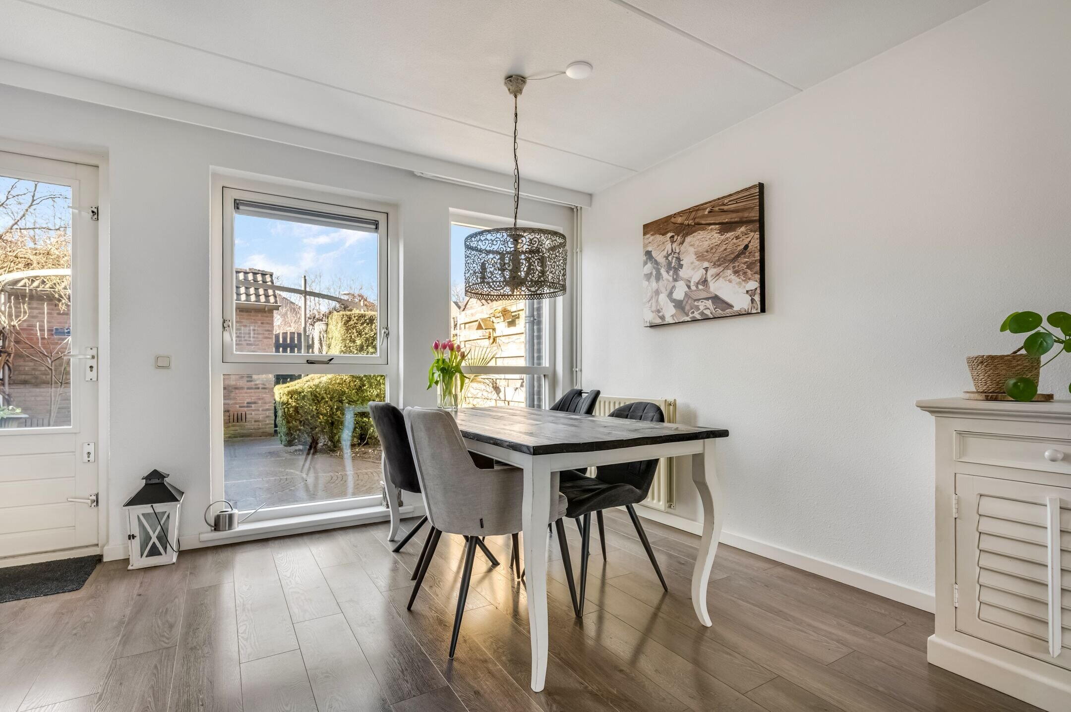 De achtertuin is onderhoudsvriendelijk aangelegd en biedt volop ruimte voor een comfortabele loungeset en een barbecue. Ideaal voor lange, gezellige zomeravonden met familie vrienden. Direct achter de woning bevindt zich een klein speelpleintje met wipkippen en een bankje, terwijl in de wijk meerdere grote speeltuinen te vinden zijn waar kinderen zich eindeloos kunnen vermaken. Hier geniet je van rust, privacy en een veilige woonomgeving waar kinderen zorgeloos buiten kunnen spelen. Bovendien ligt de woning op korte afstand van de prachtige bosrijke natuur van de Utrechtse Heuvelrug. Perfect voor wandelingen, fietstochten en voor ontspanning in het groen.